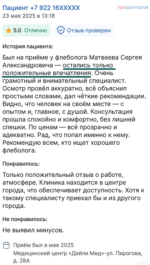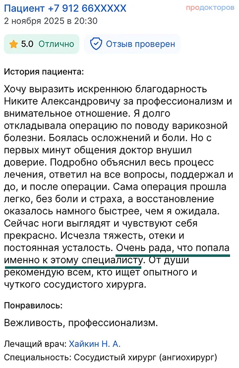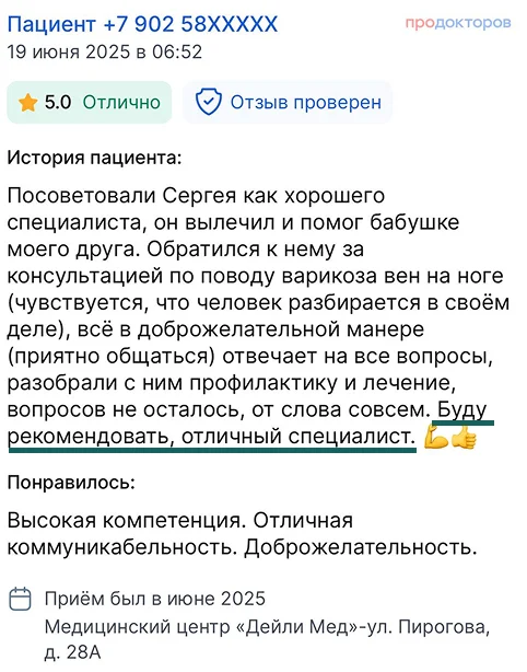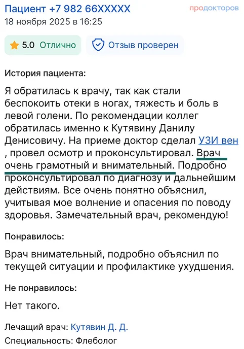 Консультация врача-флеболога, сосудистого хирурга с международным опытом